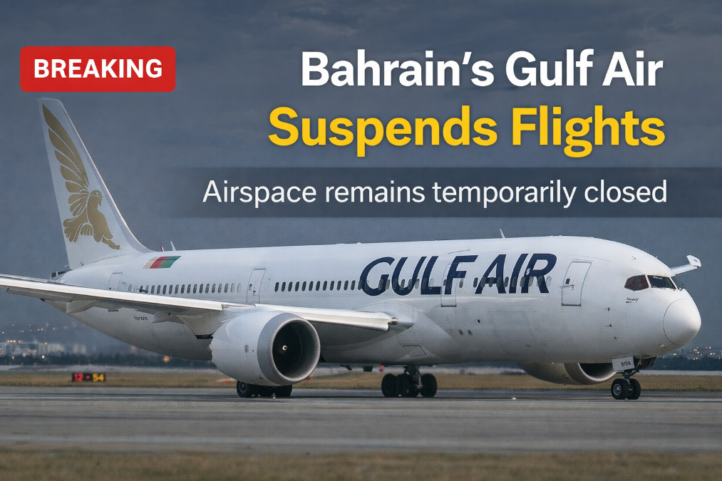 Manama: Bahrain’s national carrier Gulf Air has announced that all of its flights remain temporarily suspended as the country’s airspace continues to stay closed. The airline confirmed that operations will resume only after aviation authorities declare the skies safe for travel.