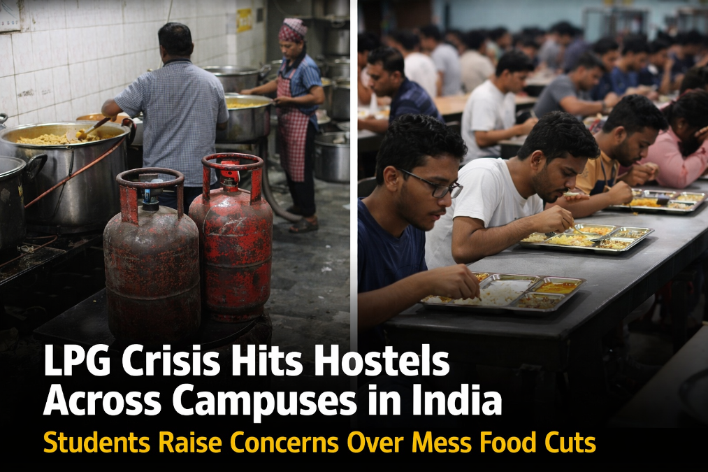 The ongoing LPG supply crisis in India is beginning to affect college and university hostels across the country, forcing institutions to reduce cooking gas consumption and simplify food menus in hostel mess facilities. Students from several campuses have reported that their daily meals have been limited or modified as hostel authorities struggle to manage LPG shortages.
